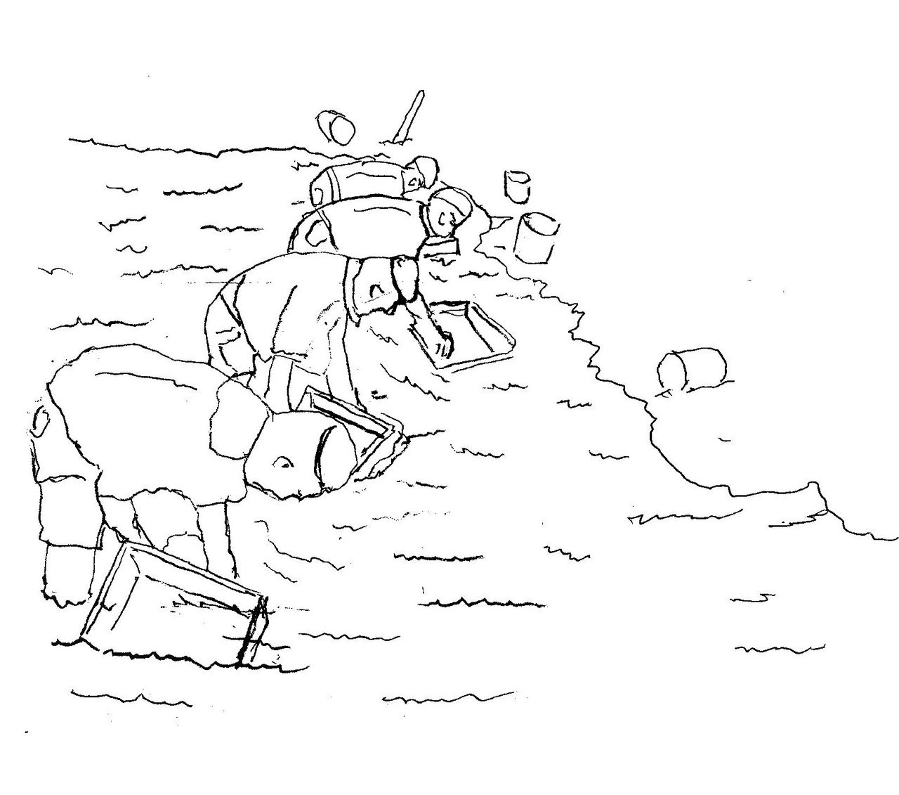 riverbeds. It was wet, back breaking labor in extreme heat, and it